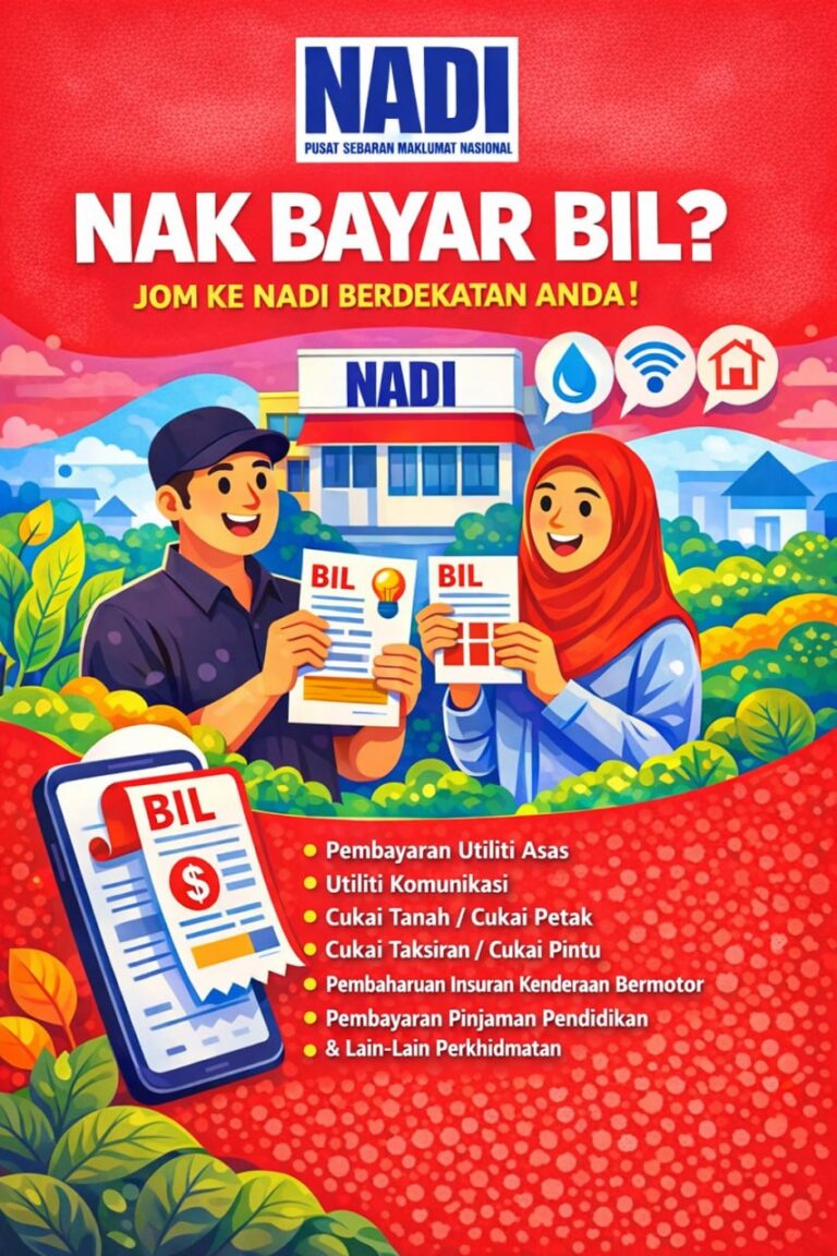💳 NAK BAYAR BIL?Jom ke NADI Taman Seri Cahaya berdekatan anda! ✅ Tak perlu beratur panjang atau pergi jauh — semuanya boleh urus di sini dengan mudah dan cepat 👍 Antara perkhidmatan yang disediakan:🔹 Pembayaran utiliti asas (air & elektrik)🔹 […]
