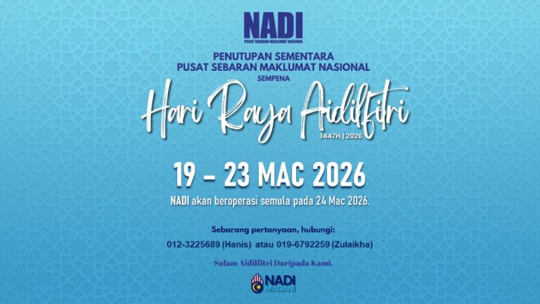 📢 NOTIS PENUTUPAN SEMENTARA NADI Taman Seri Cahaya Sempena sambutan Hari Raya Aidilfitri 1447H, NADI Taman Seri Cahaya akan ditutup sementara pada 19 – 23 Mac 2026 🎉 Kami akan kembali beroperasi seperti biasa pada 24 Mac 2026. Sebarang pertanyaan, […]