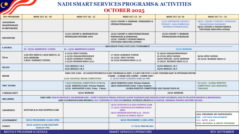 JADUAL AKTIVITI BULAN OKTOBER 2025 DI NADI TAMAN SERI CAHAYA