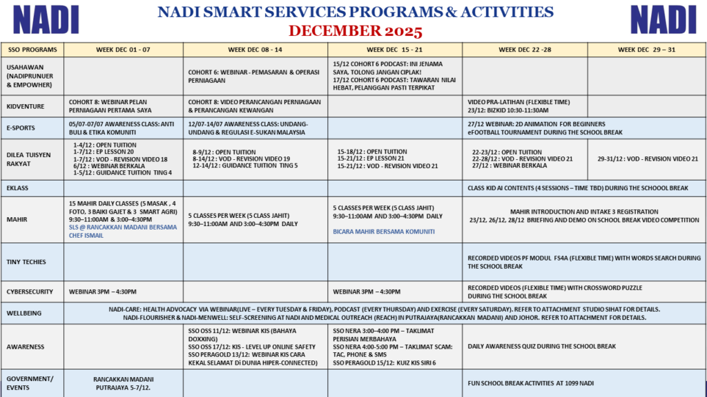 TAKWIM BULAN DISEMBER 2025 NADI TAMAN SERI CAHAYA